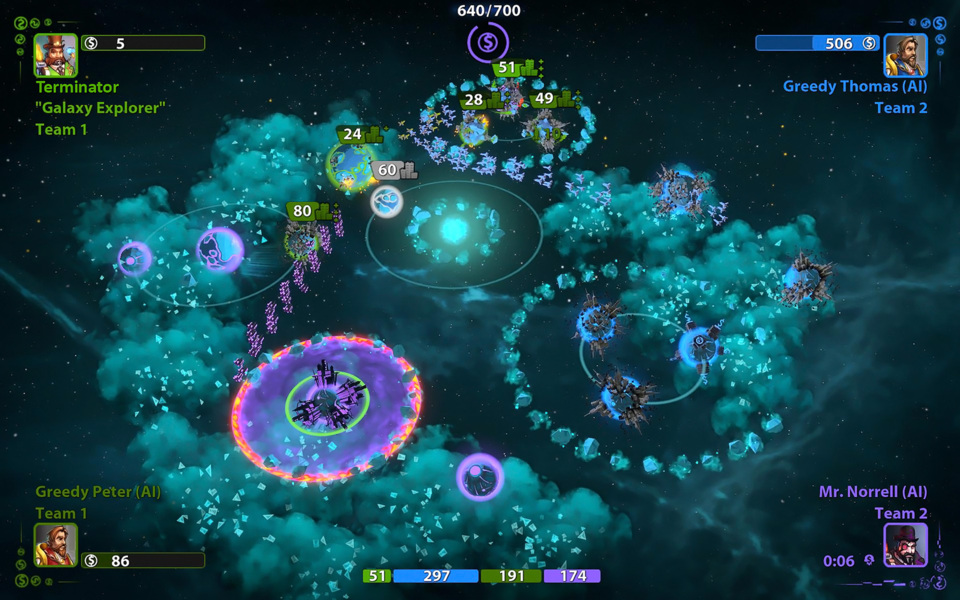 Team mode is just that, where the players can join a team with up to 3 other people, or AI, all working towards the same goal. Any combination of 4 - whether it’s 1 vs. 3, 2 vs. 2 and so on - can be chosen to change the overall experience in Planets under Attack Team mode.