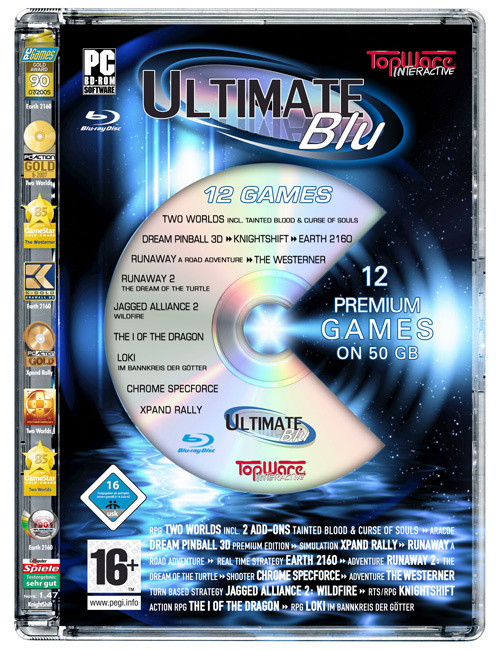 50GB Kapazität bieten die neue Double Layer Blu-ray ROM Discs. Diesen enormen Datenspeicher macht sich TopWare zu Nutze und bringt unter dem Label „Ultimate Blu“ eine Spielesammlung mit zwölf Toptiteln und damit auch die weltweit erste Blu-ray-ROM-Disc für PC überhaupt auf den Markt. Unter anderem steuert das Entwicklerteam Crimson Cow vier Titel bei. Dazu gehören das Action-RPG „Loki – Im Bannkreis der Götter“, das kultige Adventure-Duo „Runaway – A Road Adventure“ und „Runaway 2 – The Dream of the Turtle“ sowie das Point-and-Click-Abenteuer „The Westerner”. Mit dabei sind außerdem die beiden Techland-Entwicklungen „Chrome Specforce” (Ego-Shooter) und das Rennspiel „Xpand Rally”. ZUXXEZ Entertainment komplettiert die Scheibe mit dem Rollenspielhit „Two Worlds” inklusive der zwei Add-ons „Tainted Blood” und „Curse of Souls”, der süchtig machenden Flippersimulation „Dream Pinball 3D”, dem RTS-Knaller „Earth 2160”, dem rundenbasierten Strategiespiel „Jagged Alliance 2 Wildfire”, dem phantastischen Action-Rollenspiel „The I of the Dragon” sowie dem innovativen RTS-RPG-Mix „KnightShift” bei. Und da eine Blu-ray ROM Disc bekanntlich sehr viel Platz hat, gibt es auch noch jede Menge Bonusmaterial wie Artwork, Videos, Lösungshilfen oder Interviews zu den einzelnen Spielen. Die Veröffentlichung der Ultimate-Blu-Spielesammlung ist im deutschsprachigen Raum ab Mitte August für 54,99 Euro geplant.
