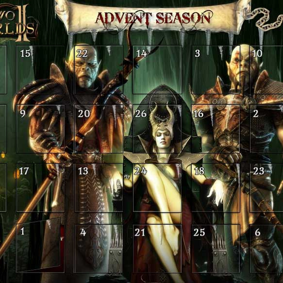 Für alle Gäste der Internetseite www.twoworlds2.com lohnt sich der Besuch ab heute gleich doppelt! Grund dafür ist der Startschuss für den prall gefüllten „Two Worlds II“-Adventskalender, in dem Preise mit einem Gesamtwert von über 10.000 US-Dollar warten! Hauptgewinn ist ein professioneller Gaming-PC im Wert von 1.000 Dollar! Bei den Festtagspreisen winken zudem weitere attraktive Gewinne wie eine Xbox 360®, eine PlayStation®3 oder 300 US-Dollar in bar. Außerdem gibt es täglich attraktive Softwarepakete und Zeitschriften-Jahresabos hinter den Kalendertürchen einzuheimsen.